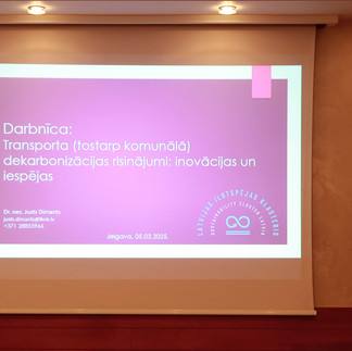 Latvijas ilgtspējas klastera vadošais pētnieks Justs Dimants Dr. oec. vadīja darbnīcu par transporta dekarbonizāciju, rosinot diskusiju par galvenajiem izaicinājumiem un iespējām, tostarp finansējumu, nodokļu politiku, infrastruktūras attīstību un publiskā un privātā sektora sadarbību. Diskusijas rezultātā formulēti priekšlikumi ilgtspējīgai mobilitātei Latvijā.